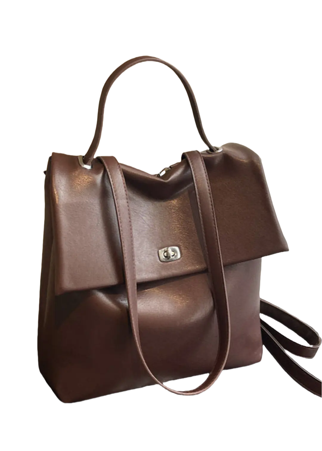 The Modern Minimalist Leather Backpack is a sleek and sophisticated accessory designed for style and practicality. Crafted from premium faux leather, it features a smooth flap closure with a Silver-tone twist lock, a comfortable handle, and adjustable straps. With a spacious interior, it’s perfect for carrying daily essentials while adding a touch of elegance to any outfit.
