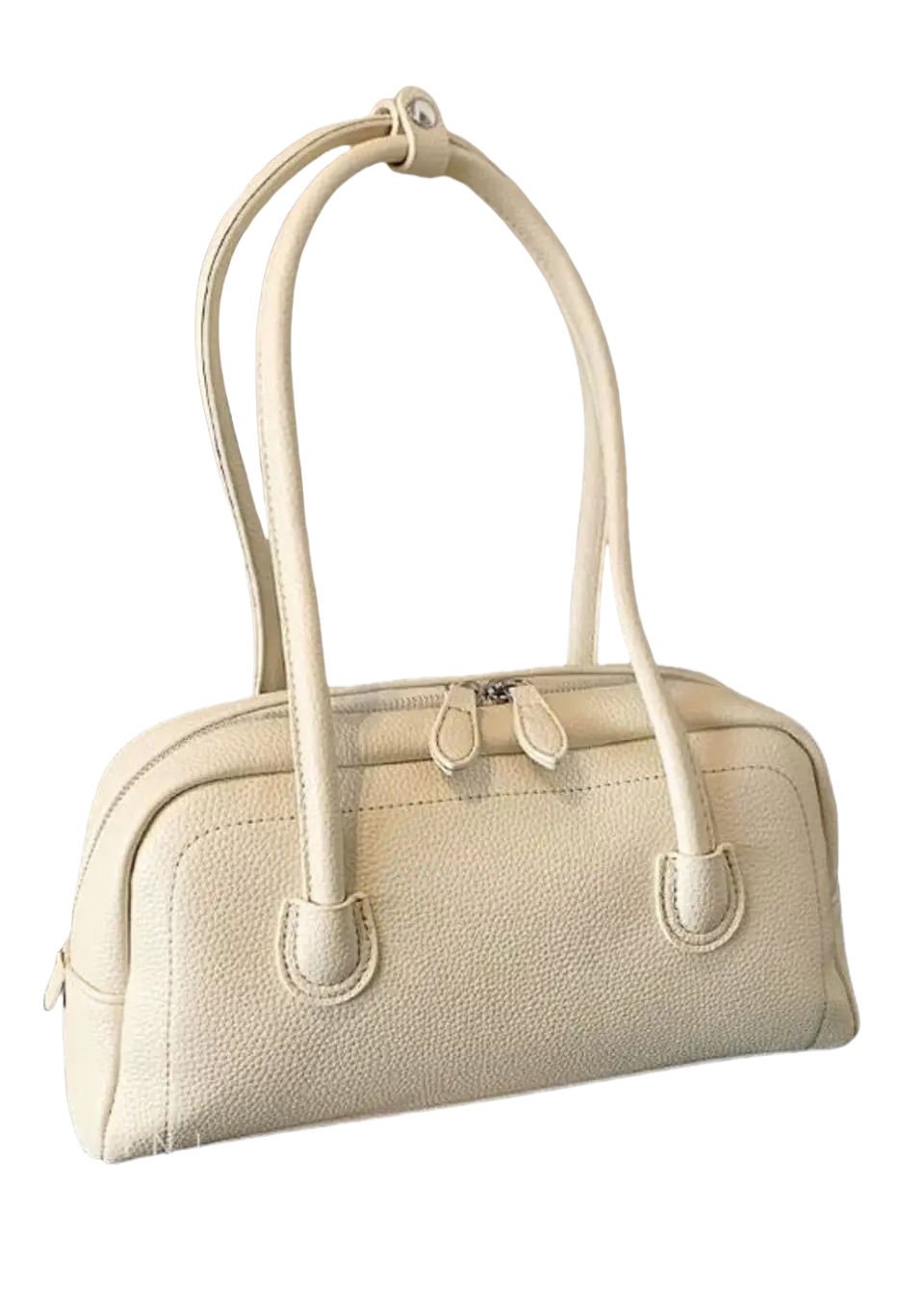 Amber Curve is a structured shoulder handbag crafted from textured vegan leather in a vibrant yellow hue. Its minimalist silhouette is balanced with rounded corners and double top handles for a clean, modern look. The compact profile (30.5 cm x 15.5 cm x 6 cm) offers enough room for your essentials while staying lightweight at just 0.31 kg. The top zip closure ensures secure storage, and the elongated 68 cm shoulder straps allow for an easy carry. Whether you're styling it with dresses, jeans, or outerwear, this piece brings a pop of color and understated polish to any outfit.