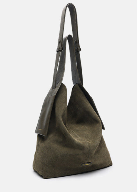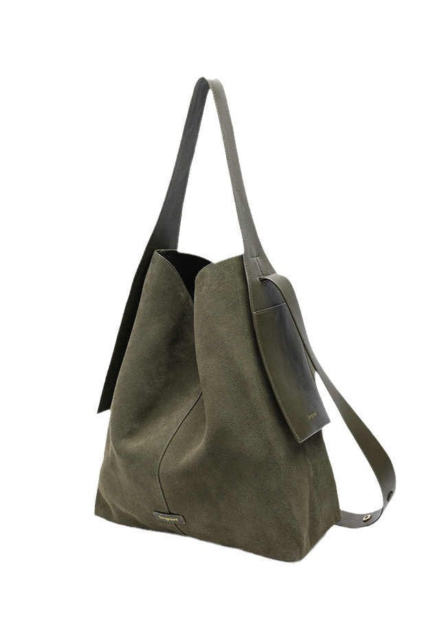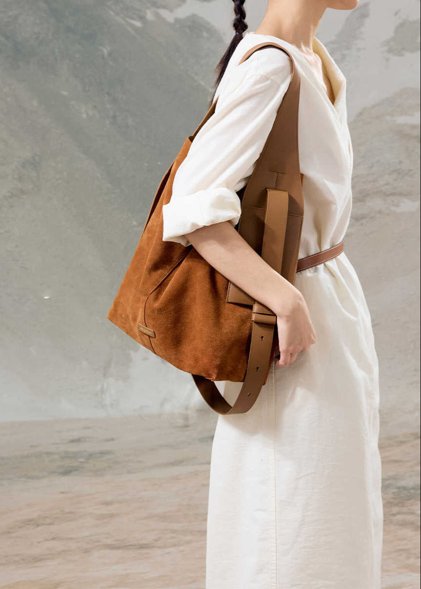 The Suede and Leather Bucket Tote Bag is a perfect blend of texture and style, offering a versatile accessory for any wardrobe. Crafted from luxurious suede and accented with smooth faux leather, this tote bag features a spacious interior that’s ideal for carrying your daily essentials. Measuring 33 cm x 17 cm x 37 cm (approximately 13" x 6.7" x 14.6"), it provides ample space while maintaining a sleek bucket design. The sturdy shoulder strap ensures comfortable wear, making it perfect for casual outings or polished work looks.