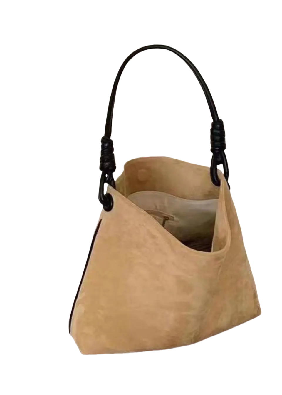 The Knotted Handle Suede Tote Bag offers a chic blend of elegance and practicality. Crafted from premium suede material, it features a spacious interior with multiple compartments, including a zipper pocket and a side pocket, perfect for organizing your daily essentials such as a tablet, A4 notebook, wallet, phone, or makeup.